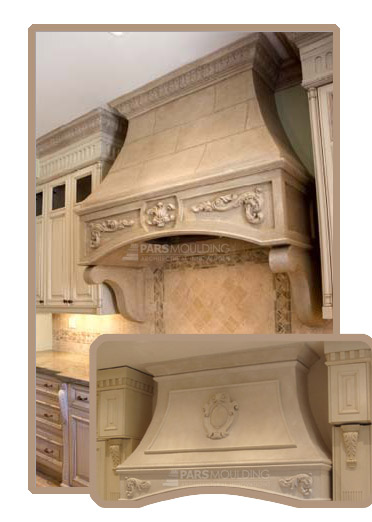 Discover a new world of possibilities! Pars Moulding has once again innovated the element of adding great character to kitchens that were once constructed with plain wood. The kitchen hood collection is tranquiled with corbels, shelves and of course the hood, there are many design types that Pars Moulding caters to.